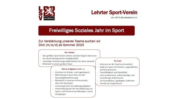 Weitere Informationen zum Freiwilligen Sozialen Jahr im Sport beim LSV sind auf der Website des Vereins unter www.lehrtersv.de/unser-verein/stellenausschreibungen zu finden.