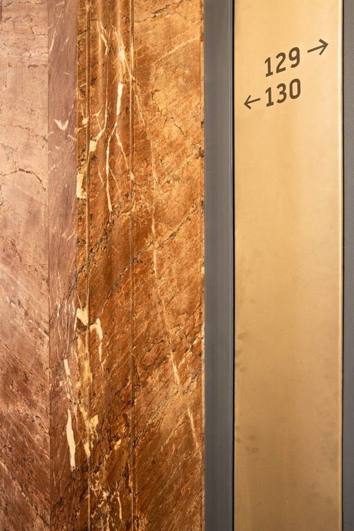 Die Besonderheit eines jeden Raumes wird dadurch spürbar. Dabei geht der sinnliche Reiz der Oberflächen mit den abstrakt wirkenden Bildausschnitten eine Verbindung ein, die Gemessenheit vermittelt, statt kühler Funktionalität.