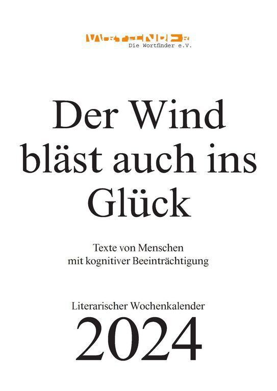 Der grafisch schön gestaltete Kalender mit dem Titel »Der Wind bläst auch ins Glück« erscheint im DIN – A4 Hochformat und enthält pro Woche ein Blatt mit einem oder mehreren Texten. Zeichnungen und Schriftbilder bereichern zudem den Kalender. Im Anhang finden sich kurze Biografien aller Autoren.