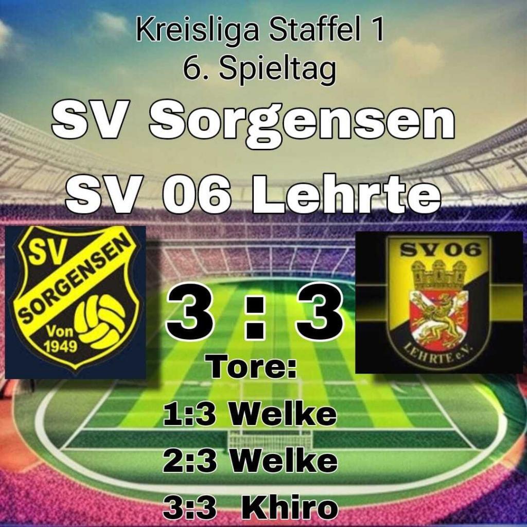 Kreisliga Region Hannover Staffel 1: SV Sorgensen – SV 06 Lehrte 3:3 (2:0)