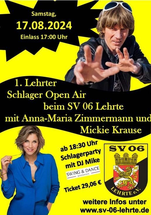Der SV 06 Lehrte e.V. kündigt somit stolz das 1. Lehrter Schlager Open Air auf dem Vereinsgelände an der Mielestraße 7 an.