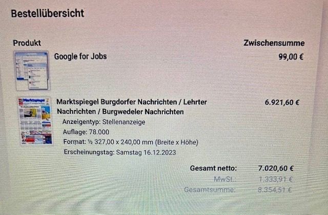 Die Anzeige ist auch in Burgdorf und Sehnde geschaltet.