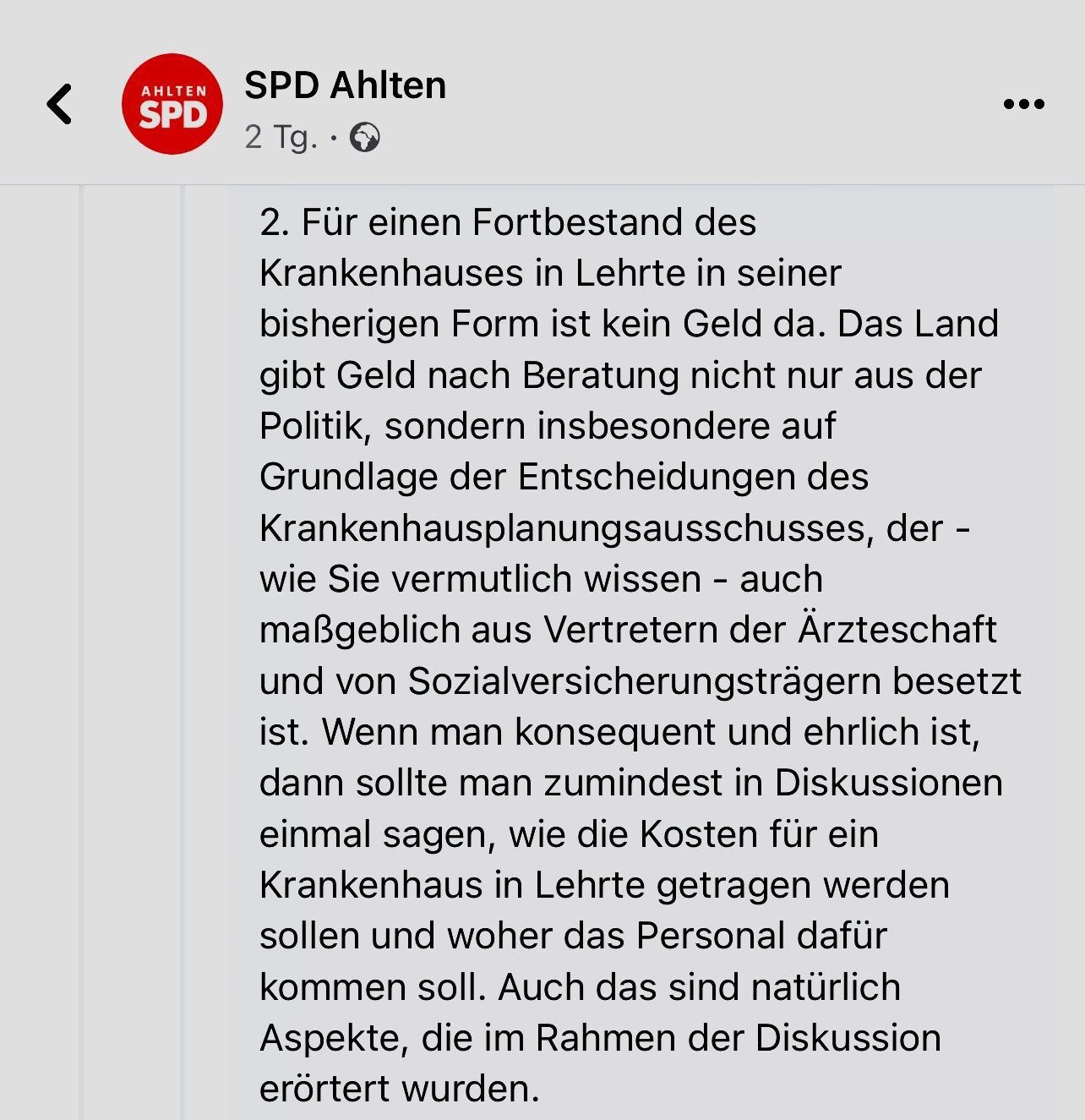 Der sehr bekannte und angesehene Lehrter SPD-Genosse Hoppe meldet sich ebenfalls zu Wort.