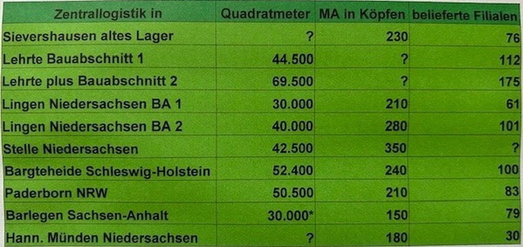 Lehrte ist mit der Eröffnung im Oktober zudem das Größte. Rinteln und Salzgitter schließen außerdem. 146 Filialen müssen also auf die vier Logistikstandorte verteilt werden.