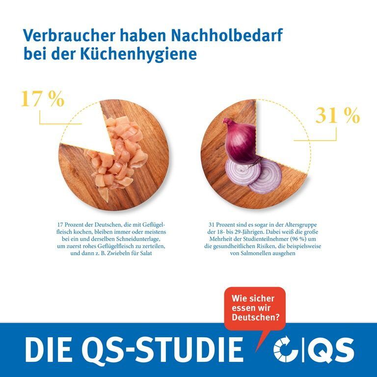 Obwohl sich fast alle Deutschen der Risiken durch Bakterien beim Umgang mit rohem Geflügelfleisch bewusst sind, nutzen 17 Prozent die gleiche Schneidunterlage anschließend für andere Lebensmittel. Dies ist besonders bei den 18- bis 29-Jährigen ein Problem, von denen 31 Prozent das gleiche Brett verwenden. Eine einfache Lösung können farblich gekennzeichnete Schneidbretter bieten: Rot für Fleisch, Grün für Gemüse. Zudem ist gründliches Reinigen nach der Verarbeitung von Geflügel unerlässlich.