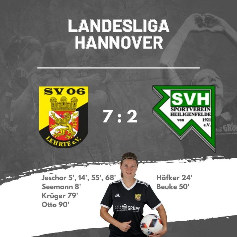 Im entscheidenden Heimspiel der Saison sicherten sich die Frauen des SV 06 Lehrte mit einem überzeugenden 7:2 gegen den SV Heiligenfelde nicht nur drei wichtige Punkte, sondern auch die fast sichere Chance, in der nächsten Partie die Landesliga-Meisterschaft zu entscheiden. Die Lehrterinnen, die bereits nach 14 Minuten durch Tore von Maike Jeschor und Malia Seemann mit 3:0 führten, zeigten eine dominante erste Halbzeit.
